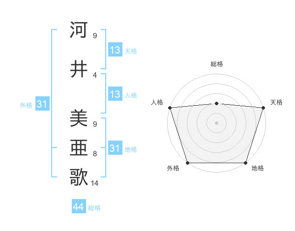 河井 美亜歌さんを姓名の画数から五運を鑑定