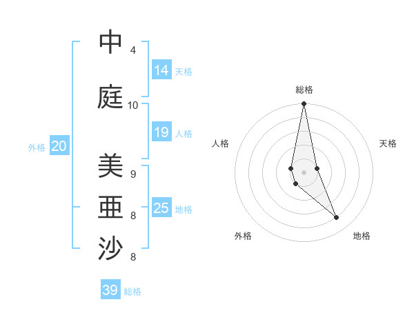 中庭 美亜沙さんの総格は39画の5点!