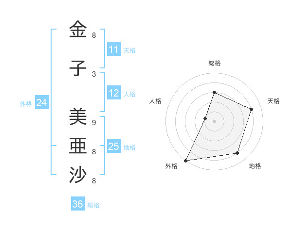 金子 美亜沙さんを姓名の画数から五運を鑑定