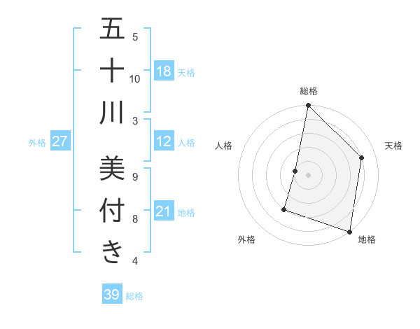 五十川 美付きさんを姓名の画数から五運を鑑定