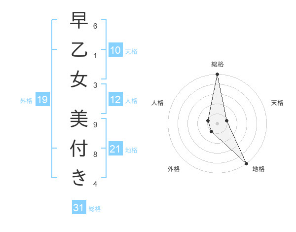 早乙女 美付きさんの総格は31画の5点!