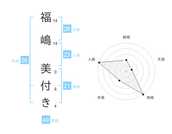 福嶋 美付きさんを姓名の画数から五運を鑑定