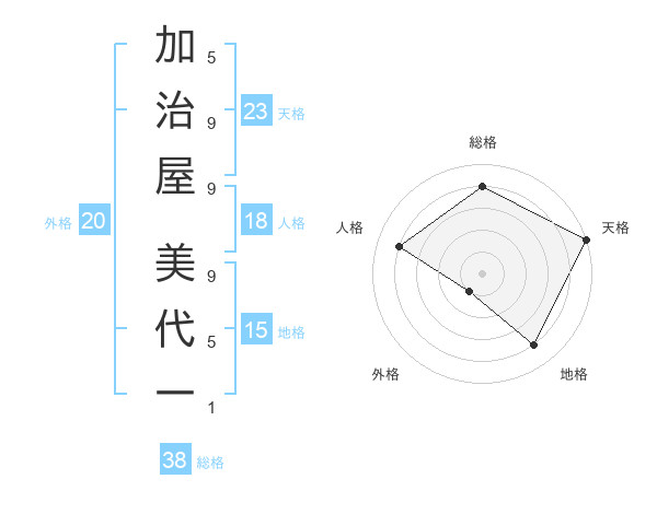 加治屋 美代一さんを姓名の画数から五運を鑑定