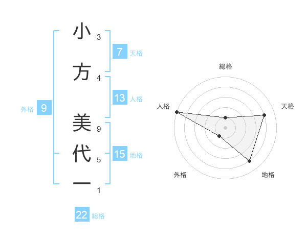 小方 美代一さんの総格は22画の1点!