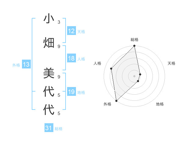 小畑 美代代さんの総格は31画の5点!