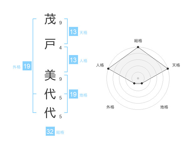 茂戸 美代代さんを姓名の画数から五運を鑑定