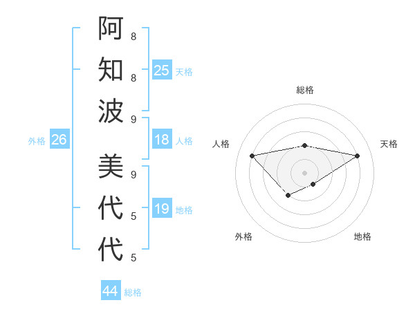 阿知波 美代代さんを姓名の画数から五運を鑑定