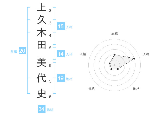 上久木田 美代史さんの天格は15画の4点!