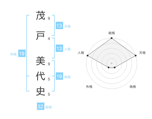 茂戸 美代史さんの総格は32画の5点!