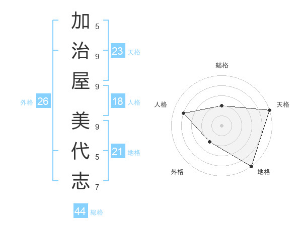 加治屋 美代志さんを姓名の画数から五運を鑑定