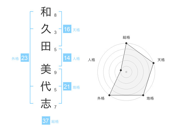 和久田 美代志さんを姓名の画数から五運を鑑定