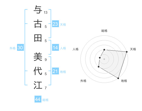 与古田 美代江さんの天格は23画の5点!