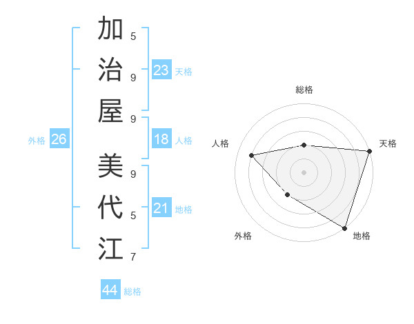 加治屋 美代江さんを姓名の画数から五運を鑑定