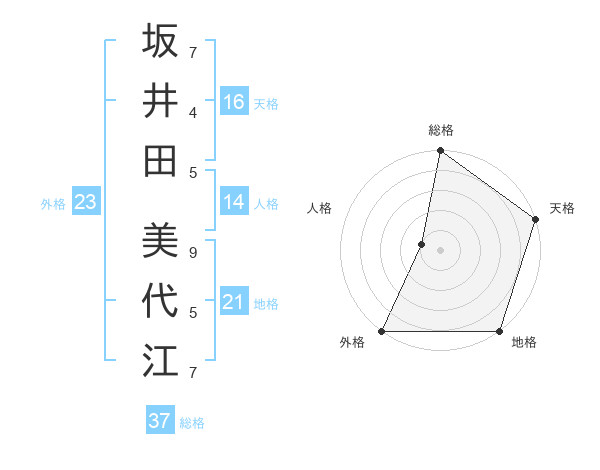 坂井田 美代江さんを姓名の画数から五運を鑑定