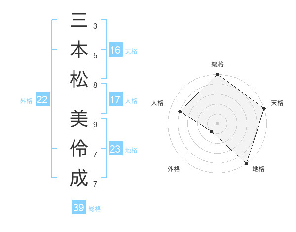 三本松 美伶成さんの総格は39画の5点!