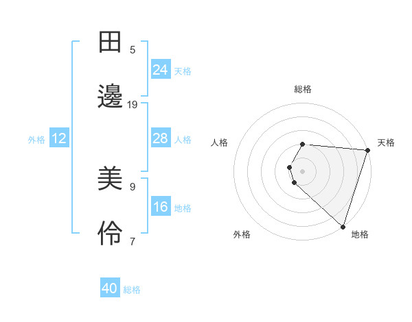 田邊 美伶さんの天格は24画の5点!