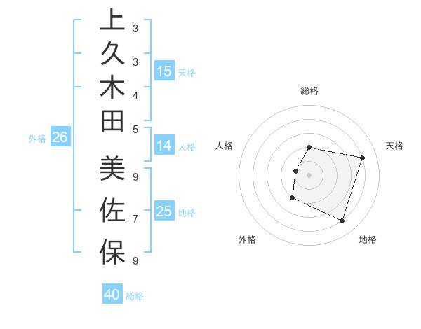 上久木田 美佐保さんを姓名の画数から五運を鑑定