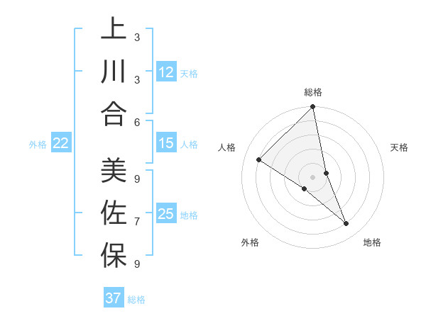 上川合 美佐保さんの総格は37画の5点