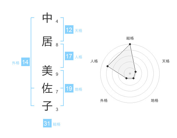 中居 美佐子さんを姓名の画数から五運を鑑定