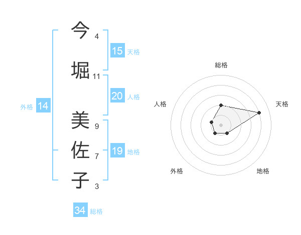 今堀 美佐子さんを姓名の画数から五運を鑑定