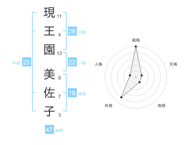 現王園 美佐子さんの総格は47画の5点!