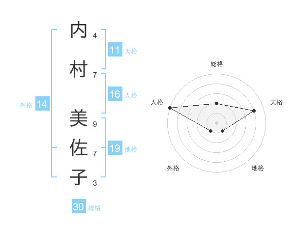 内村 美佐子さんを姓名の画数から五運を鑑定