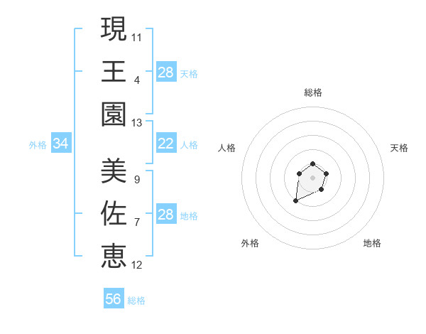 現王園 美佐恵さんを姓名の画数から五運を鑑定