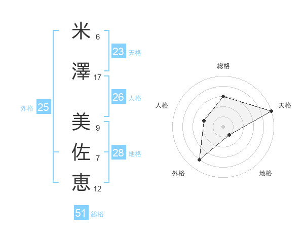 米澤 美佐恵さんを姓名の画数から五運を鑑定