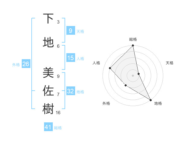 下地 美佐樹さんを姓名の画数から五運を鑑定
