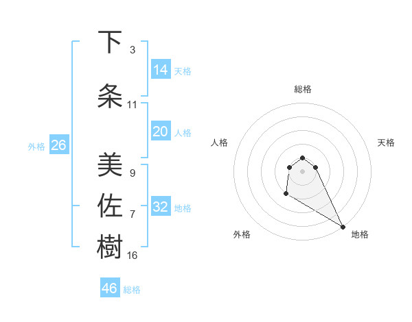 下条 美佐樹さんを姓名の画数から五運を鑑定