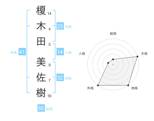 榎木田 美佐樹さんの天格は23画の5点!
