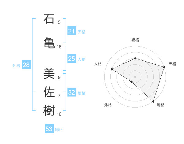 石亀 美佐樹さんを姓名の画数から五運を鑑定