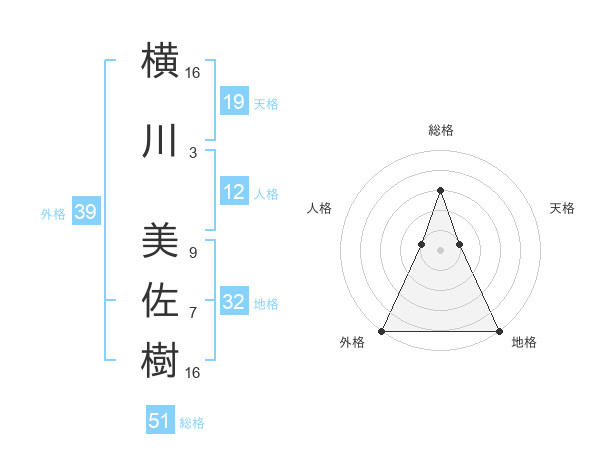 横川 美佐樹さんを姓名の画数から五運を鑑定