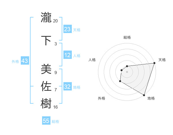 瀧下 美佐樹さんを姓名の画数から五運を鑑定