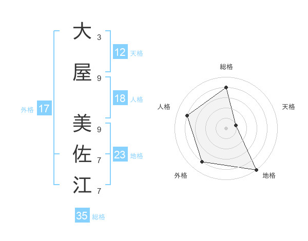 大屋 美佐江さんを姓名の画数から五運を鑑定