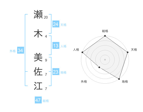 瀬木 美佐江さんを姓名の画数から五運を鑑定