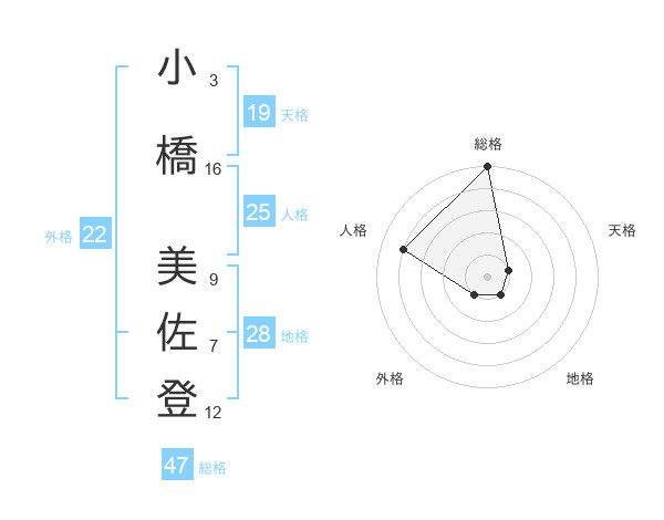 小橋 美佐登さんを姓名の画数から五運を鑑定