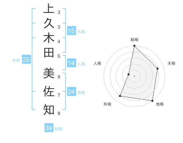 上久木田 美佐知さんの総格は39画の5点