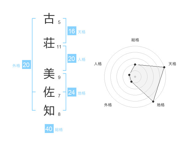 古荘 美佐知さんの地格は24画の5点!
