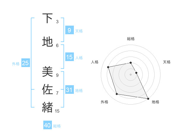 下地 美佐緒さんを姓名の画数から五運を鑑定