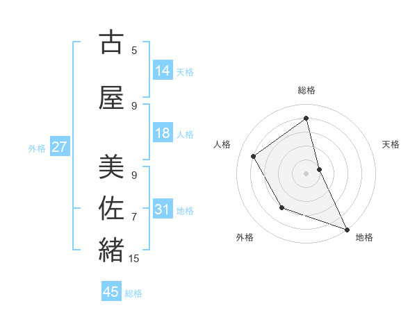 古屋 美佐緒さんの総格は45画の4点!