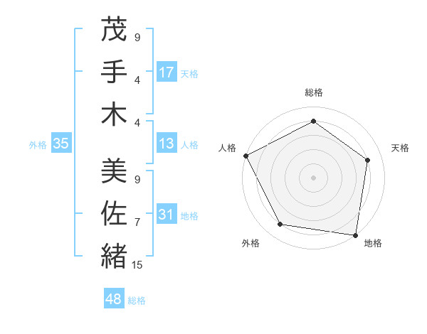 茂手木 美佐緒さんを姓名の画数から五運を鑑定