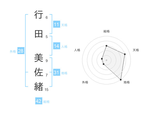 行田 美佐緒さんを姓名の画数から五運を鑑定