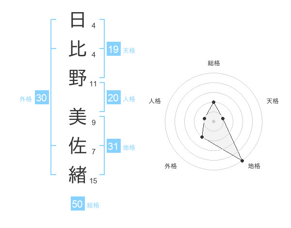 日比野 美佐緖さんを姓名の画数から五運を鑑定