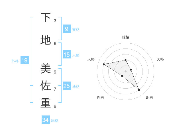 下地 美佐重さんを姓名の画数から五運を鑑定