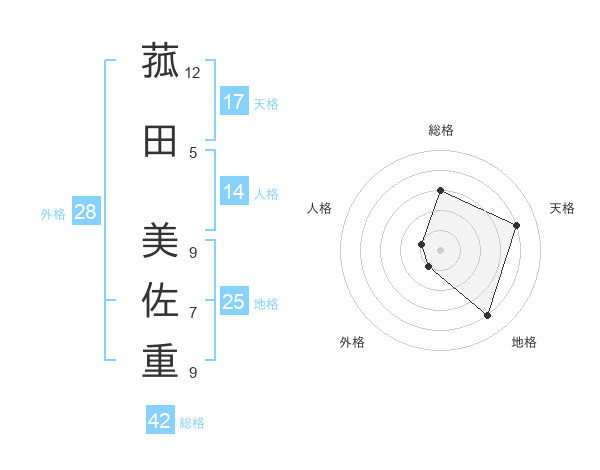 菰田 美佐重さんの総格は42画の3点!