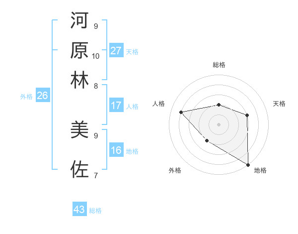 河原林 美佐さんを姓名の画数から五運を鑑定