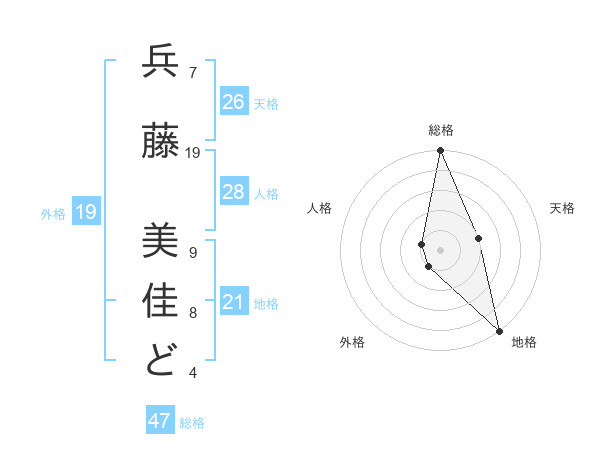 兵藤 美佳どさんを姓名の画数から五運を鑑定