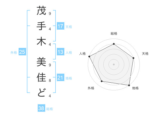 茂手木 美佳どさんを姓名の画数から五運を鑑定