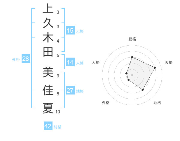 上久木田 美佳夏さんを姓名の画数から五運を鑑定